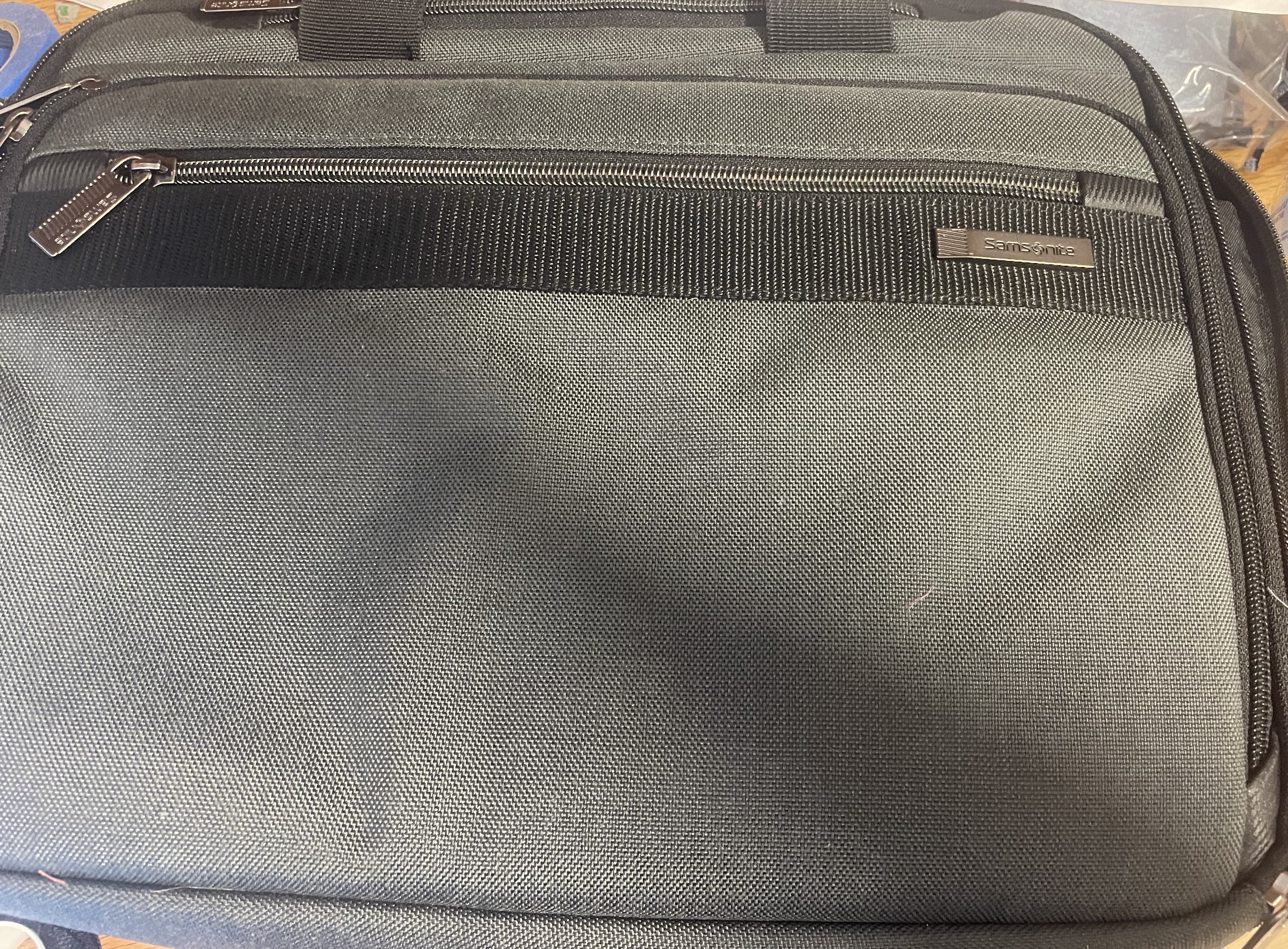 I started with a computer bag that I got from the thrift store. I wanted to have a bag with patches and pins on it, and I wanted to have a bigger bag for when I need to carry more stuff. So, this was the solution.